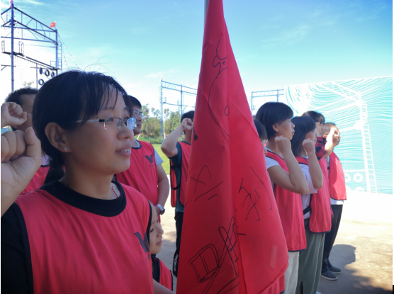 人員隨機(jī)分成兩隊(duì),指定隊(duì)長、副隊(duì)長、宣傳員、記錄員、后勤員等職位,各隊(duì)在隊(duì)長的帶領(lǐng)下于規(guī)定時(shí)間內(nèi)完成各自的隊(duì)名、口號(hào)、隊(duì)歌,組建戰(zhàn)隊(duì)。