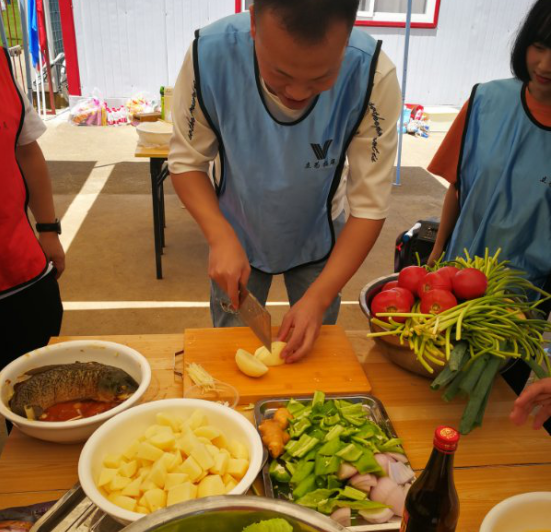 不知不覺,已經(jīng)到了用餐的時(shí)間。秉承“自己動(dòng)手,豐衣足食”的理念,午餐由自己動(dòng)手。大家分工明確,洗菜、切菜、生火、炒菜,有條不紊,在大家的共同努力之下,我們享用了一頓無比豐盛又美味的午餐,我們的菜品有大盤雞、酸菜魚、蒜薹炒肉、蓮菜炒肉、醋溜蓮菜、麻婆豆腐、酸辣土豆絲、西紅柿炒雞蛋。