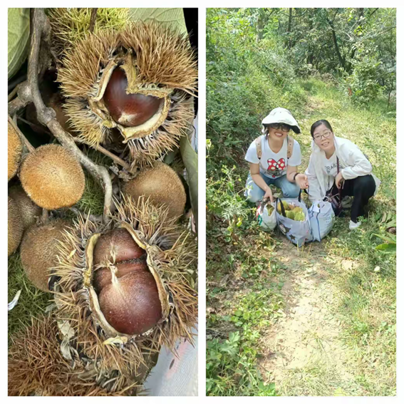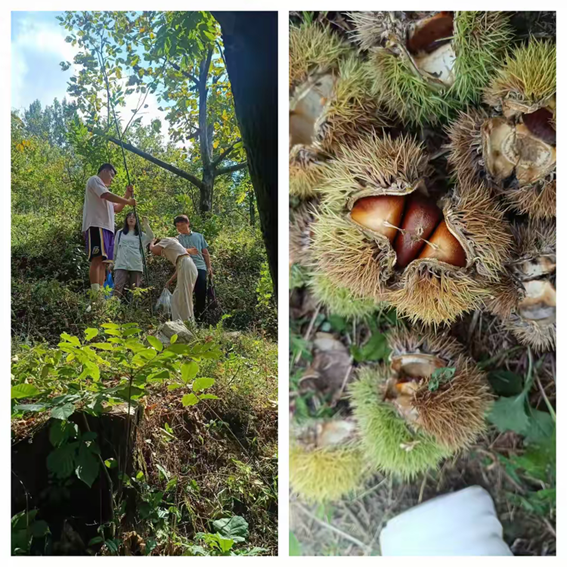 酒足飯飽之后,農(nóng)家樂(lè)老板引導(dǎo)我們前往后山采摘板栗。大家提著袋子,興高采烈地登山開始采摘板栗。看著一個(gè)個(gè)飽滿的板栗落入袋,大家的臉上都洋溢著滿足的笑容。