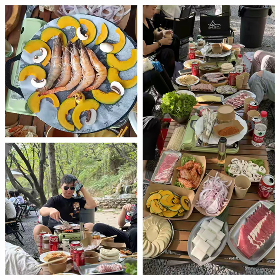 傍晚時(shí)分,我們進(jìn)行了韓式燒烤活動(dòng)。大家分工合作,有的負(fù)責(zé)鋪油紙,有的負(fù)責(zé)撒油,有的負(fù)責(zé)烤肉,還有的傻傻地看著肉流口水。在歡聲笑語(yǔ)中,一片片美味的烤肉出爐了。大家圍坐在火爐旁,品嘗著美味的烤肉,感受著這份難得的團(tuán)聚時(shí)光。